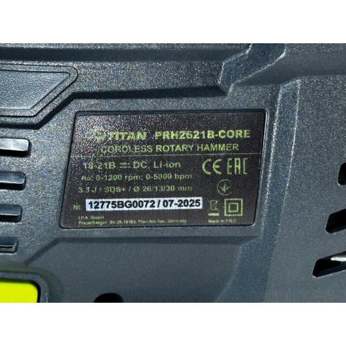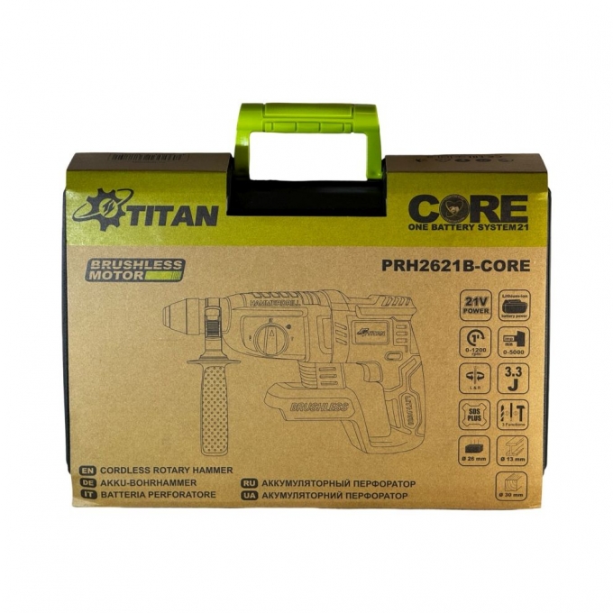Перфоратор TITAN PRH2621B-CORE SDS plus, 21В, 3,3 Дж, 3-х режима, без батареи и з/у (2201912775) × 1