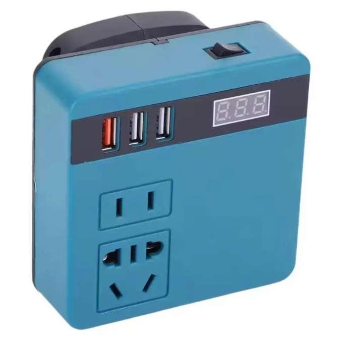 Инвертор напряжения DC 18-21V в 220V, 120W (300W пик) для Makita – это компактное решение для мобильного питания в любых условиях. Устройство позволяет подключать бытовые приборы с напряжением 220V к аккумуляторам 18-21V от электроинструментов. Модель поставляется без встроенной батареи, что делает её удобной для владельцев совместимых аккумуляторов. Инвертор станет практичным помощником в поездках, на даче или строительной площадке. Благодаря компактным размерам его легко взять с собой в багажник или рабочий ящик. Конструкция рассчитана на повседневное использование в полевых условиях. Это простой способ получить доступ к сети 220V там, где нет стационарного электроснабжения.