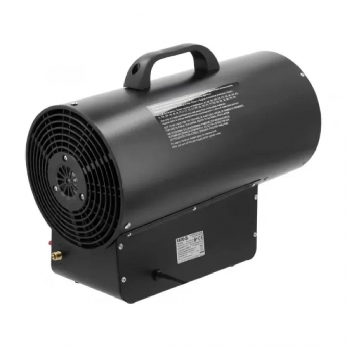 Тепловая пушка YATO YT-99733 работает на сжиженном газе пропан-бутан стандартов G30/G31. Устройство оснащено пьезоэлектрическим зажиганием, что упрощает запуск и повышает удобство использования. Двойная система защиты предотвращает перегрев и автоматически перекрывает подачу газа при исчезновении пламени. Также подача топлива прекращается при превышении температуры выше 75 °C. Высокая производительность позволяет быстро прогревать воздух в помещении. Электродвигатель стабильно работает от стандартной сети 220–240 В. Конструкция рассчитана на безопасную и надежную эксплуатацию.