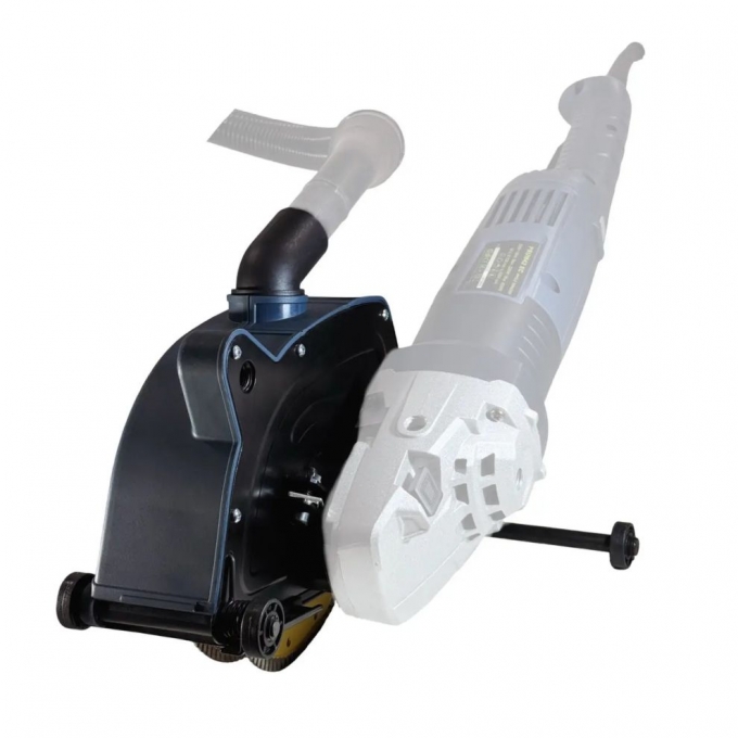 Ефективна конструкція кожуха забезпечує до 95% уловлювання пилу під час підключення пилососа, що особливо важливо при роботі в приміщенні. Універсальний адаптер дозволяє підключати штроборіз до пилососів різних марок без складних доробок. Швидка система розбирання полегшує заміну дисків і не потребує використання додаткових інструментів. Широкий набір проставок і вкладок дає можливість встановити насадку на КШМ різних брендів. Додаткова опорна вісь із колесом допомагає плавніше вести інструмент по поверхні. Продумана комплектація економить час на підбір сумісних елементів. Насадка забезпечує акуратний і рівний результат під час виконання монтажних робіт.