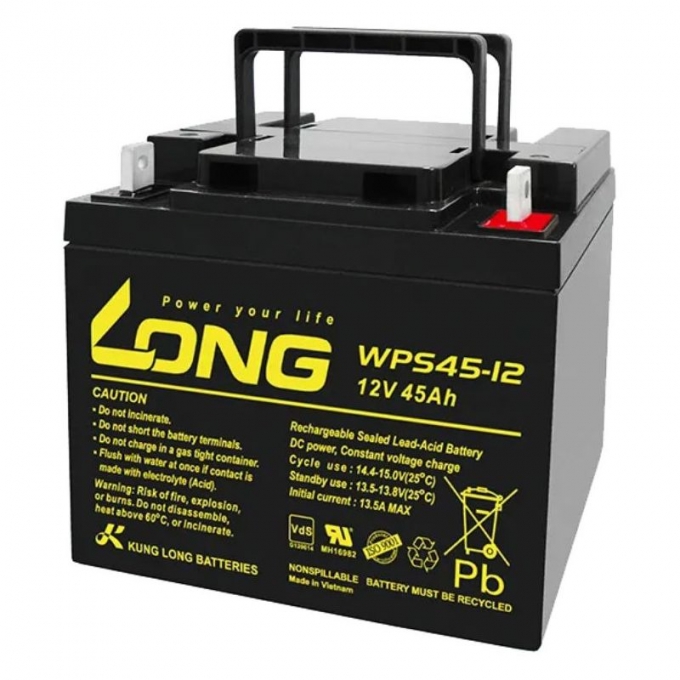 Акумуляторна батарея Kung Long WPS45-12 45Ah належить до професійної серії WPS, розробленої для систем із підвищеними вимогами до надійності та віддачі потужності. Це герметичний свинцево-кислотний акумулятор із напругою 12 В, розрахований на тривалу роботу в режимі резервного живлення. Модель оптимально підходить для експлуатації в ДБЖ, системах безпеки та аварійного освітлення. Завдяки технології AGM батарея повністю необслуговувана та не потребує доливання електроліту. Корпус герметичний і стійкий до витоків, що дозволяє використовувати акумулятор у приміщеннях з обмеженою вентиляцією. Висока щільність енергії забезпечує стабільну роботу обладнання при пікових навантаженнях. Термін служби в буферному режимі сягає 8–10 років за дотримання умов експлуатації.