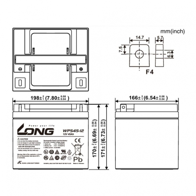 Акумуляторна батарея AGM Kung Long WPS45-12 45Ah × 1