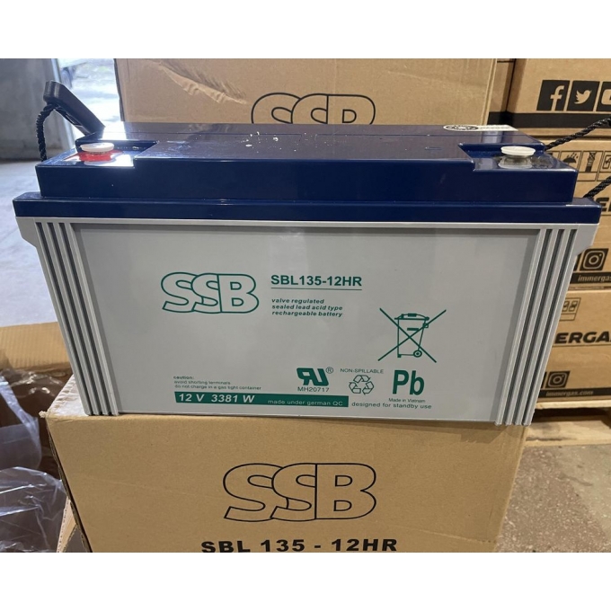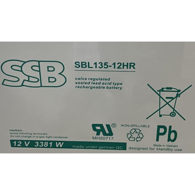 Акумуляторна батарея SSB AGM SBL135-12HR 12 V 120 Ah розроблена для стабільної та тривалої роботи в системах резервного електроживлення. Німецький бренд SSB Battery відомий високою якістю виконання та суворим контролем параметрів на всіх етапах виробництва. Модель належить до серії HR, розрахованої на буферний режим експлуатації зі строком служби до 12 років. Технологія AGM забезпечує герметичність конструкції та підвищену безпеку під час використання. Електроліт утримується у скловолоконних сепараторах, що виключає ризик витоку. Акумулятор демонструє низький внутрішній опір і високу енерговіддачу. Це надійне рішення для об’єктів із підвищеними вимогами до безперебійного живлення.
