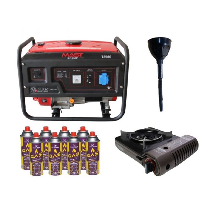 Бензиновий генератор MAST GROUP Т3500 + газова плитка Orcamp CK-505 + картридж газовий Pegas 400 мл (8 шт.) × 1