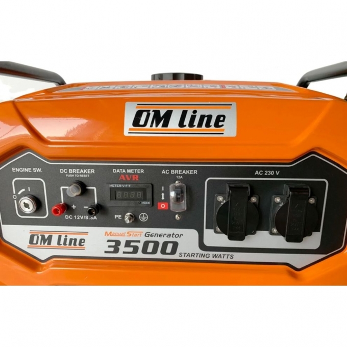 Генератор OMLine 3500 оснащений інтуїтивно зрозумілою панеллю керування з двома розетками на 230 В і струмом 16 А. Частота вихідного струму становить 50 Гц, що забезпечує коректну роботу чутливої електроніки. Надійна система фільтрації та верхнє розташування клапанів OHV сприяють зниженню робочої температури двигуна. Чавунний корпус покращує змащення та підвищує зносостійкість основних вузлів. Кований колінчастий вал і металевий кулачок розраховані на тривалу експлуатацію. Альтернатор здатний видавати до 20% додаткової потужності для запуску обладнання з високими пусковими струмами. Вага генератора 47 кг забезпечує стійкість під час роботи без втрати мобільності.