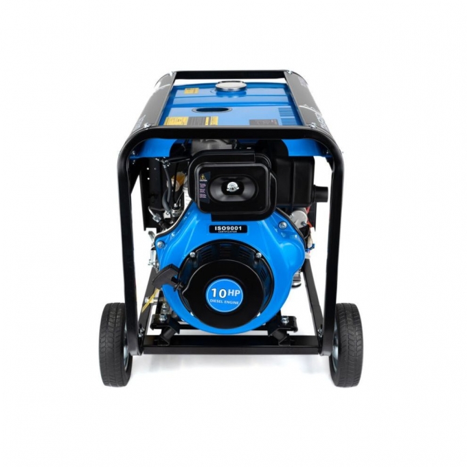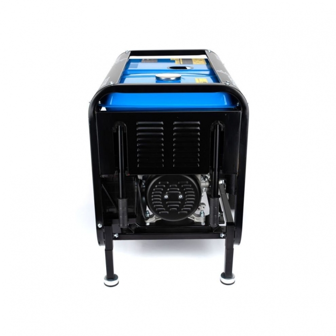 Одноциліндровий чотиритактний дизельний двигун потужністю 7,4 кВт або 10 кінських сил забезпечує високий крутний момент. Це дозволяє без проблем запускати пристрої з підвищеними пусковими струмами. Для зручності передбачені електростартер і ручний запуск. Паливний бак об’ємом 13 літрів забезпечує до 6 годин безперервної роботи без дозаправки. Економна витрата пального робить генератор зручним для регулярного використання. Повітряна система охолодження підтримує стабільну роботу двигуна під навантаженням. Контроль параметрів роботи спрощується завдяки вбудованому вольтметру.