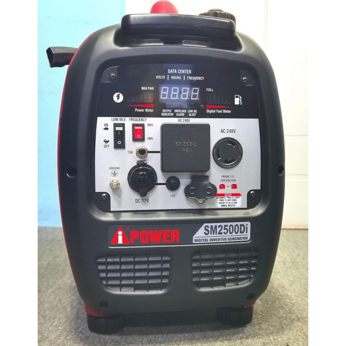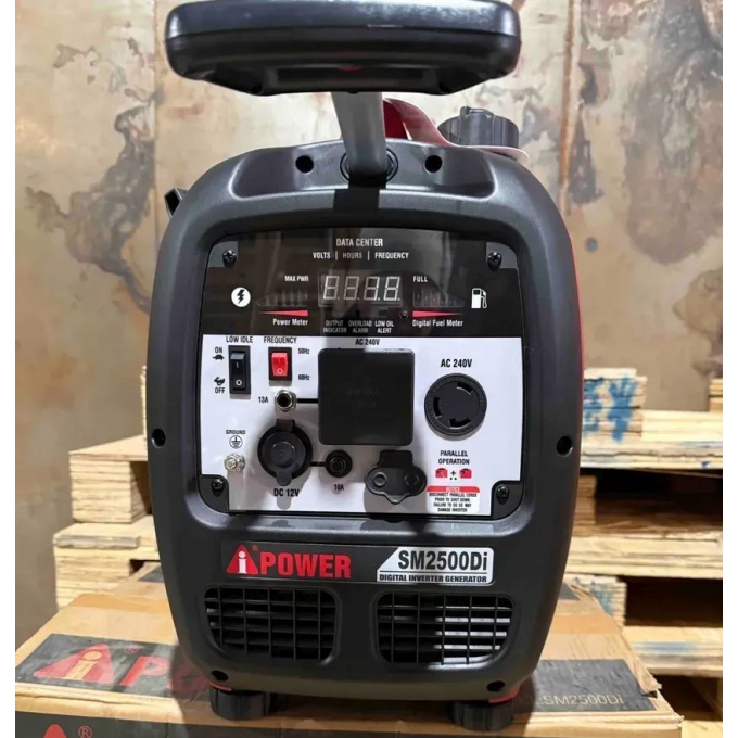 Корпус генератора виготовлений із міцного АБС-пластику, стійкого до механічних впливів. Невелика вага та компактні розміри дозволяють без зусиль перевозити пристрій в автомобілі. На панелі передбачено розетку 220 В та USB-вихід для заряджання гаджетів. Керування здійснюється за допомогою багатофункціонального перемикача, що об’єднує запуск, зупинку та керування подачею пального. Генератор готовий до роботи одразу після підключення, без складних процедур. Модель сумісна за класом і призначенням із Honda EU 22i. Це робить iPower SM2500Di практичним вибором для користувачів, які цінують портативність і стабільне живлення.
