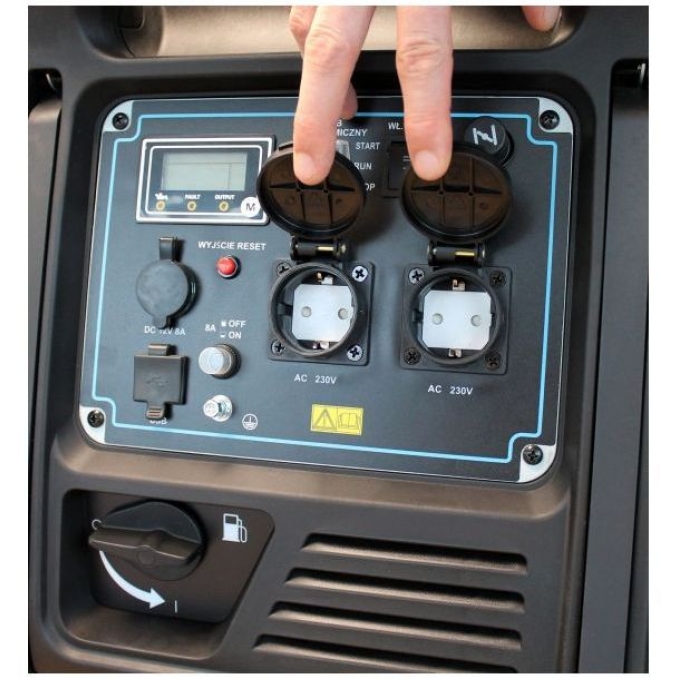 Генератор виконаний у закритому шумоізольованому корпусі з ударостійкого пластику, що робить його зручним для використання поруч із житловими та робочими приміщеннями. Рівень шуму становить 58–65 дБ на відстані 7 метрів, забезпечуючи комфорт під час роботи. Проста та зрозуміла панель керування оснащена дисплеєм та індикаторами контролю роботи. Для підключення передбачено дві розетки 230 В і вихід 12 В. Об’єм паливного бака 8,8 л дозволяє тривалу автономну роботу без частого дозаправлення. Колеса та зручна ручка полегшують переміщення генератора територією. Компактні розміри 665х465х535 мм і вага 42 кг роблять модель мобільною та зручною для зберігання.