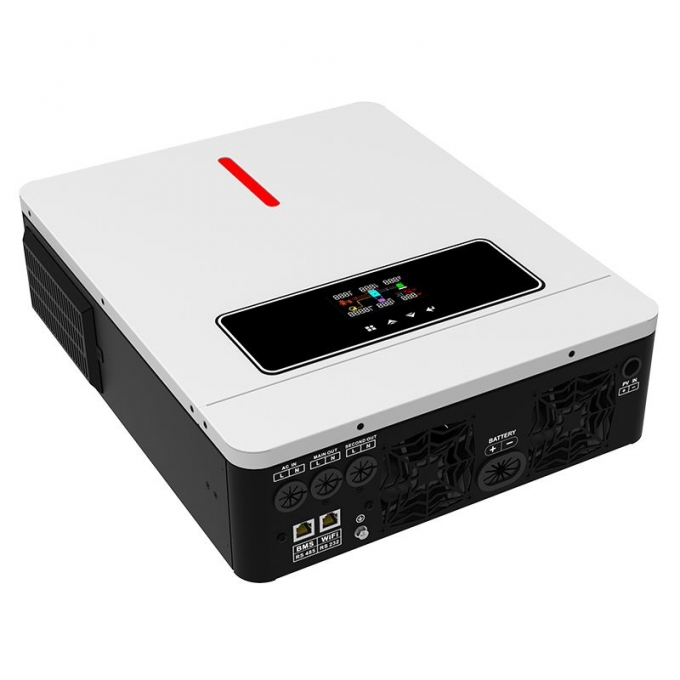 Sumry NM-ECO-6.2KW поєднує компактність, простоту монтажу та широкий функціонал. Він забезпечує стабільну роботу при зміні вхідної напруги від 60 до 450 В і автоматично підлаштовується під частоту 50/60 Гц. Максимальна потужність сонячного масиву становить 6500 Вт, що робить його ідеальним вибором для побутових і комерційних установок середньої потужності. Пристрій оснащений інтелектуальною системою «розумного заряджання» акумуляторів, яка оптимізує процес зарядки для продовження терміну їхньої служби. Інвертор підтримує роботу з акумуляторами типів AGM, GEL, Li-Ion і LiFePO4, а також інтегрується з BMS через інтерфейси RS232/RS485. Можливість підключення Wi-Fi модуля (SmartESS) дозволяє контролювати параметри системи в реальному часі. Рівень ефективності пристрою сягає 99%, що гарантує максимальне використання сонячної енергії без втрат.