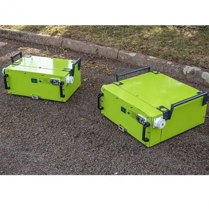 Зарядна станція розрахована на мобільне використання та оснащена чотирма зручними ручками для перенесення. Можливість роботи на відкритому повітрі робить її практичним рішенням для об’єктів без стаціонарного електропостачання. Для підключення обладнання використовується розетка промислового класу IEC Type CEE 144. Вбудовані системи захисту запобігають перегріву, перевантаженню та надмірному розрядженню акумулятора. Багатофункціональний дисплей дозволяє контролювати ключові параметри роботи станції. Мінімальний рівень шуму робить експлуатацію комфортною навіть поблизу робочих зон. За потреби станція може використовуватися разом із транспортним візком.