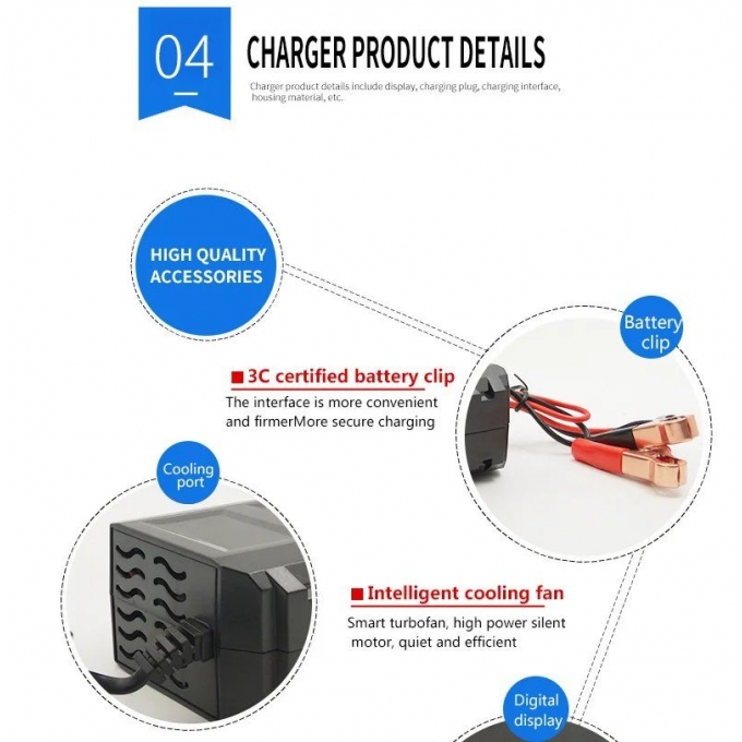 Зарядний пристрій LiitoKala Lii-14.6V20A-Clip вирізняється продуманою конструкцією та якісними матеріалами. Клемні затискачі забезпечують надійний контакт з акумулятором, а вбудований захист запобігає короткому замиканню та переполюсовці. Пристрій автоматично регулює силу струму, що подовжує термін служби батареї. Чіткий LCD-дисплей відображає етапи заряджання, струм і напругу, спрощуючи контроль за процесом. Компактні розміри та мала вага роблять прилад зручним для транспортування. Модель однаково добре підходить як для майстрів, так і для побутового використання. Продукція LiitoKala зарекомендувала себе як надійна техніка з точними параметрами та високим коефіцієнтом корисної дії.
