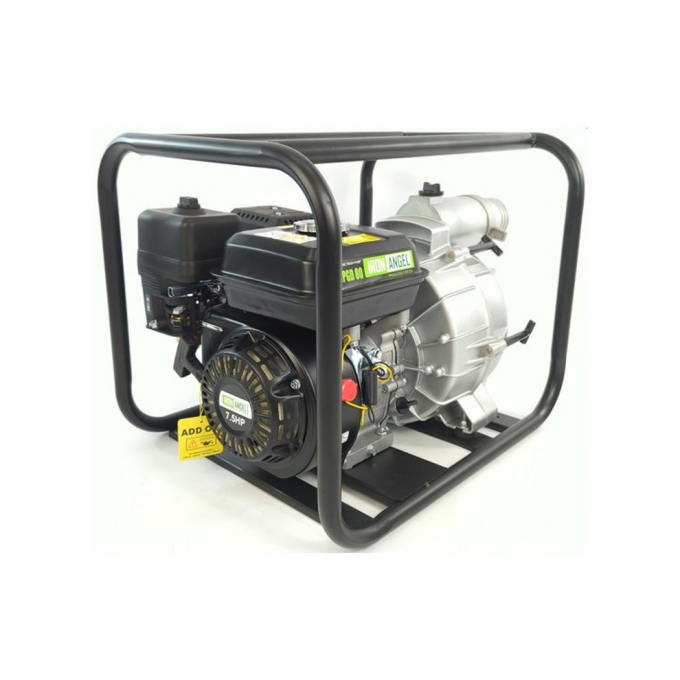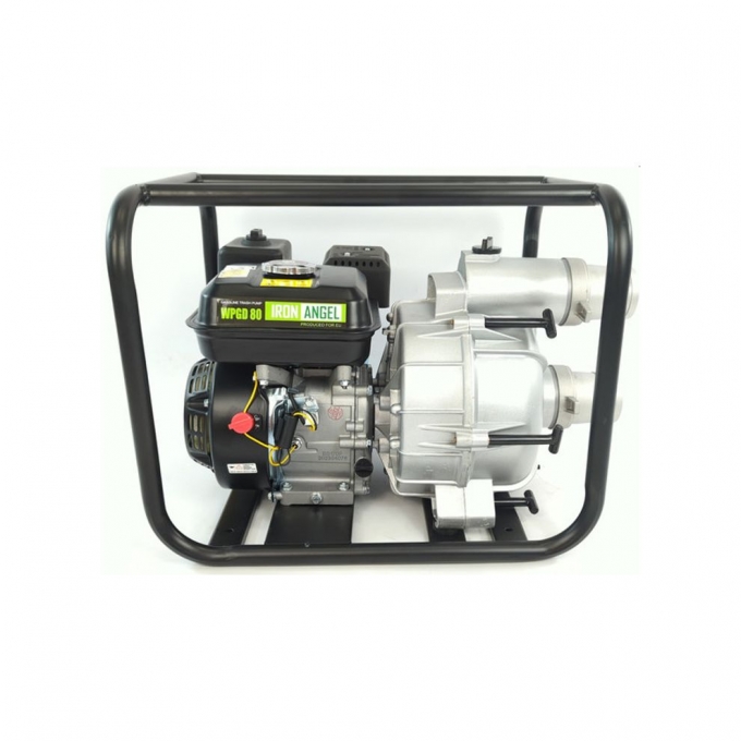 Мотопомпа Iron Angel WPGD 80 призначена для перекачування засміченої води з вмістом частинок у зваженому стані до 30 мм (допустимий розмір частинки), Діаметр вхідного/вихідного патрубка 80мм, висота підйому 30 м, продуктивність 60 м3/год, об'єм бака. , Потужність двигуна 7,5 л/с. Мотопомпа повинна використовуватися з фільтром на трубопроводі, що всмоктує.