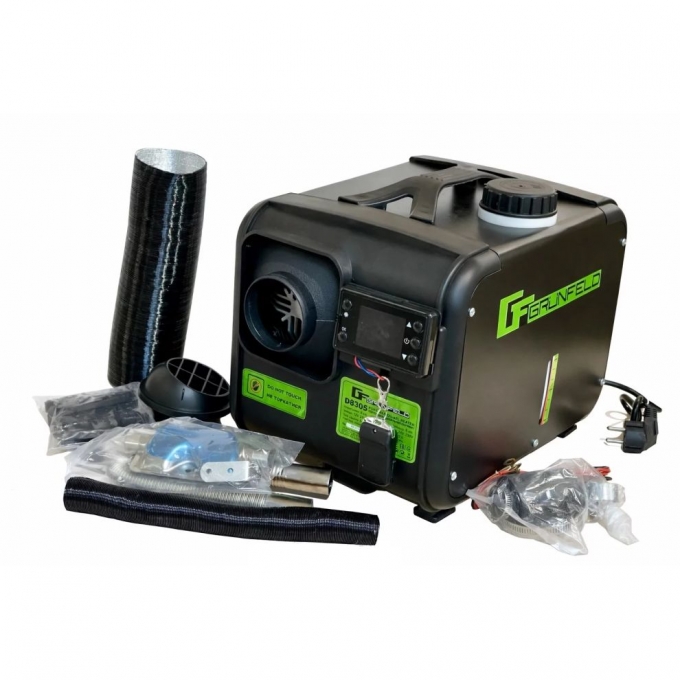 Grunfeld D8305 оснащений двома режимами роботи для гнучкого налаштування обігріву. У ручному режимі користувач самостійно регулює подачу палива та інтенсивність нагріву. Автоматичний режим підтримує задану температуру за допомогою вбудованого термодатчика, зменшуючи потужність у міру досягнення потрібних параметрів. Це дозволяє уникнути частих увімкнень і вимкнень, продовжуючи ресурс пристрою. Програмований таймер дає можливість заздалегідь встановити час запуску для попереднього прогріву приміщення або транспорту. Пульт дистанційного керування забезпечує зручний контроль роботи на відстані. Захист від випадкових натискань підвищує безпеку експлуатації.