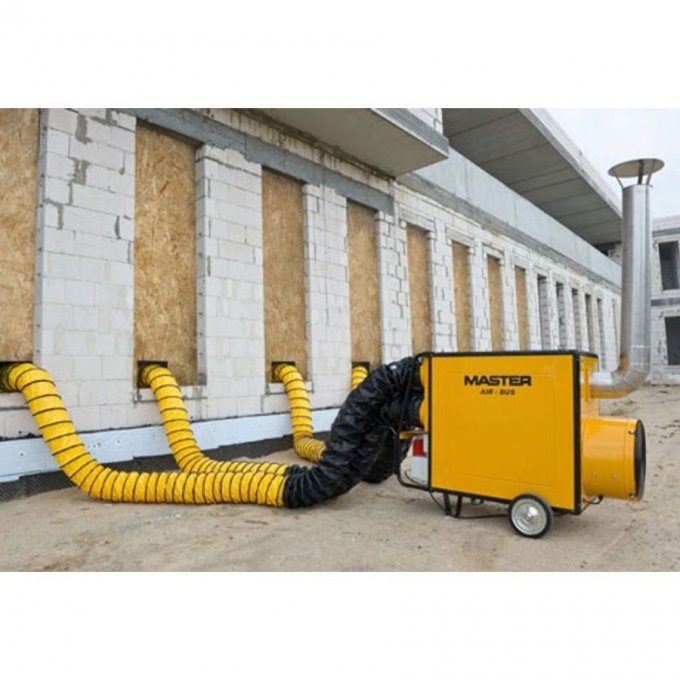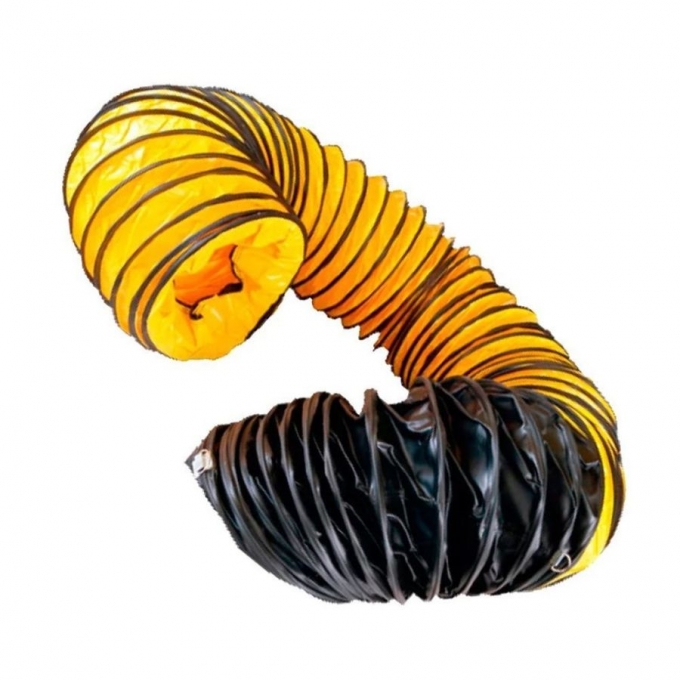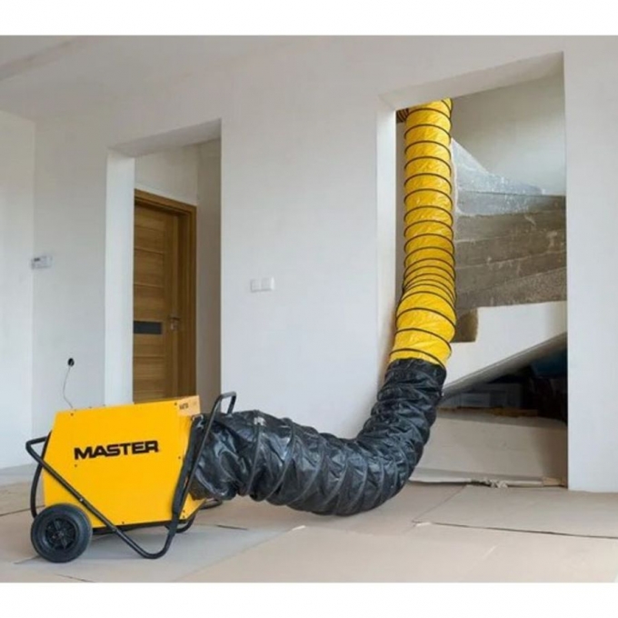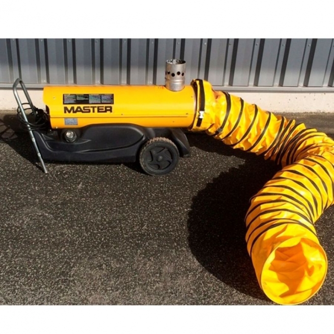 Гнучкий шланг Master 4515.558 (PVC Ø 34 см, 7.6 м) призначений для подачі теплого повітря від теплових гармат Master усередину приміщень, забезпечуючи ефективний розподіл тепла та комфортну температуру. Конструкція шланга дозволяє спрямовувати потік повітря у потрібну зону без втрат тиску та теплової енергії. Завдяки діаметру 34 см і довжині 7,6 м він ідеально підходить для обігріву великих приміщень, таких як склади, цехи, ангари чи будівельні об’єкти. Перші два метри шланга виготовлені з термостійкого чорного матеріалу, що витримує температуру до +150 °C, що гарантує безпеку під час експлуатації. Решта частини з жовтого ПВХ стійка до температур до +85 °C і відзначається високою гнучкістю. Шланг легко монтується на сопла гармат і надійно фіксується за допомогою спеціальної стрічки. Це практичне рішення для професійного використання, яке забезпечує довговічність і стабільну роботу системи обігріву.
