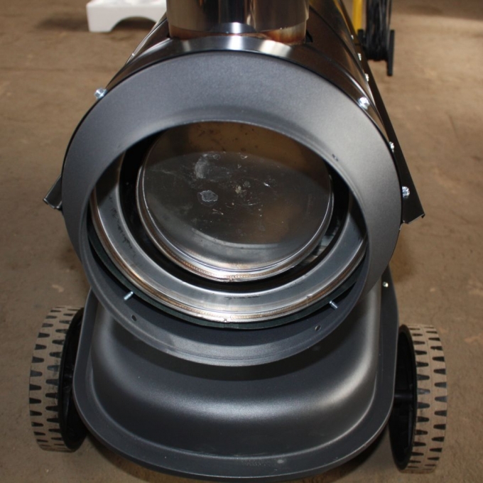 Теплова дизельна гармата KINLUX BGO-30B-16-F — це надійне джерело тепла для обігріву складів, цехів, ангарів та будівельних майданчиків. Модель оснащена вбудованим термостатом з індикацією поточної та заданої температури, що дозволяє точно контролювати мікроклімат у приміщенні. Непрямий принцип нагріву робить використання безпечним, оскільки продукти згоряння не потрапляють у повітряний потік. Пристрій обладнаний зручною візком із колесами, що полегшує переміщення в робочій зоні. Великий паливний бак на 56 літрів забезпечує тривалу роботу без дозаправки. За потреби можна підключити виносний термостат з кабелем довжиною 10 метрів для більш точного контролю температури. Конструкція продумана до дрібниць, що гарантує надійність, довговічність і зручність експлуатації.